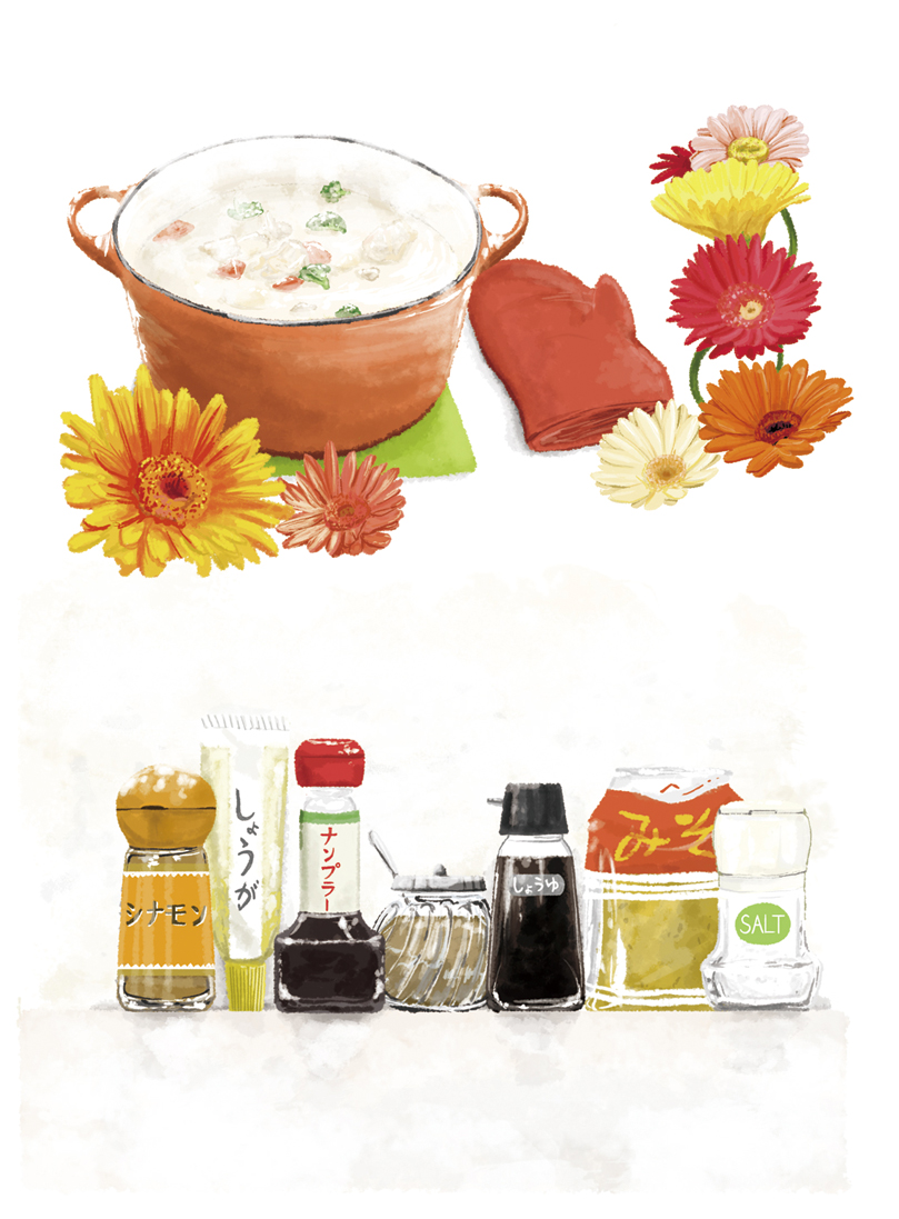 色鉛筆と水彩色鉛筆を水でのばして色を付けたイラストです
